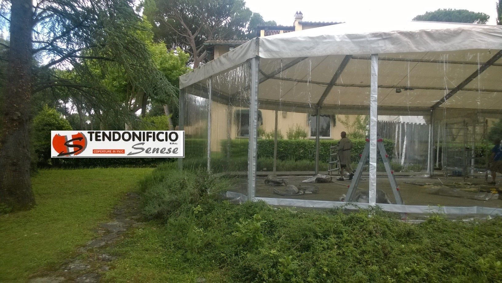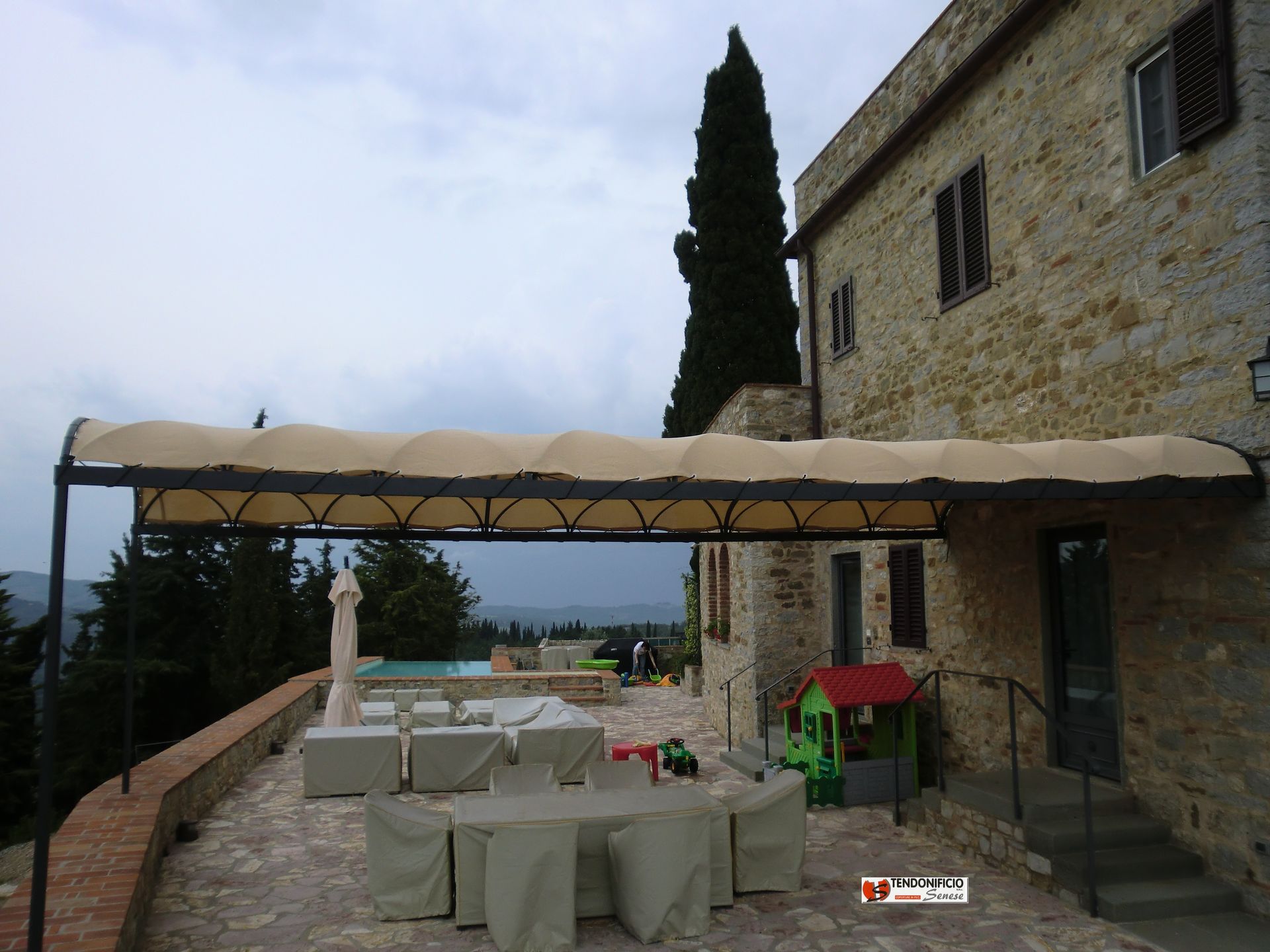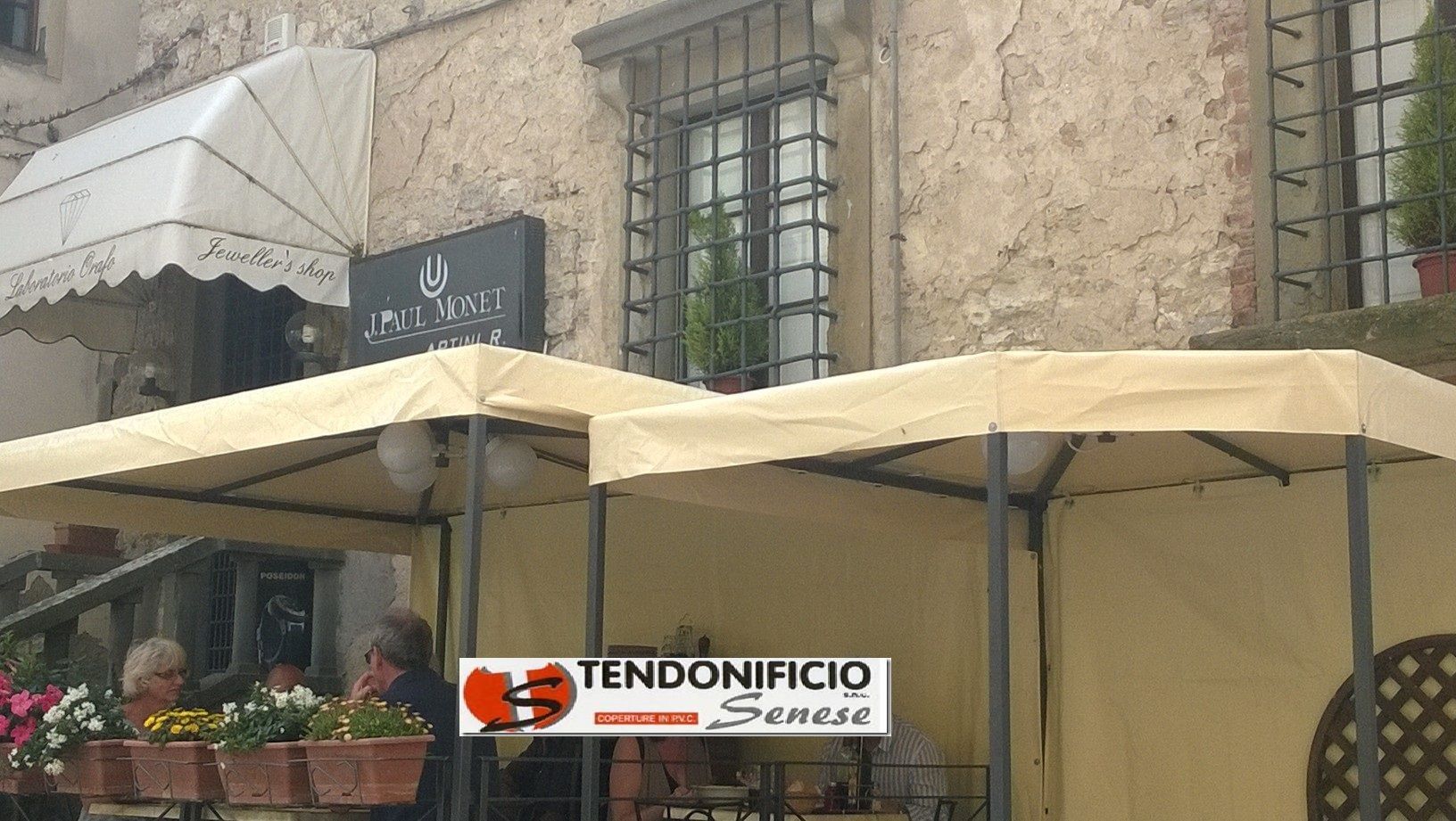Il Tendonificio Senese di Monteroni d'Arbia si occupa, insieme alla produzione di teli sagomati per piscine, della realizzazione di teli di copertura per ristoranti e locali pubblici. Per questo tipo di produzione, disponibile con consegne in tutta Italia, vengono , impiegati tessuti ingnifughi certificati, con particolare cura nella scelta del colore del tessuto più idoneo al contesto. Oltre al tessuto PVC disponiamo di tessuti in rete ombreggiante. I teli di chiusura laterali in cristal trasparente consentono di realizzare ambienti completamente chiusi.